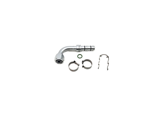 - AC FITTING AEROQUIP E-Z CLIP, FEMALE O'RING, 90 DEGREE, Fitting Size: #8, Hose Size: #10 WITH CLIPS & CAGE - AMCFTG102EZ