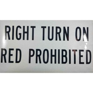 DECAL, "RIGHT TURN ON RED PROHIBITED" BLACK ON WHITE REFLECTIVE, 6" X 11" WITH 1-1/2" LETTERS, GOES ON IC BUMPER, SMALL - DECIC-RTSM